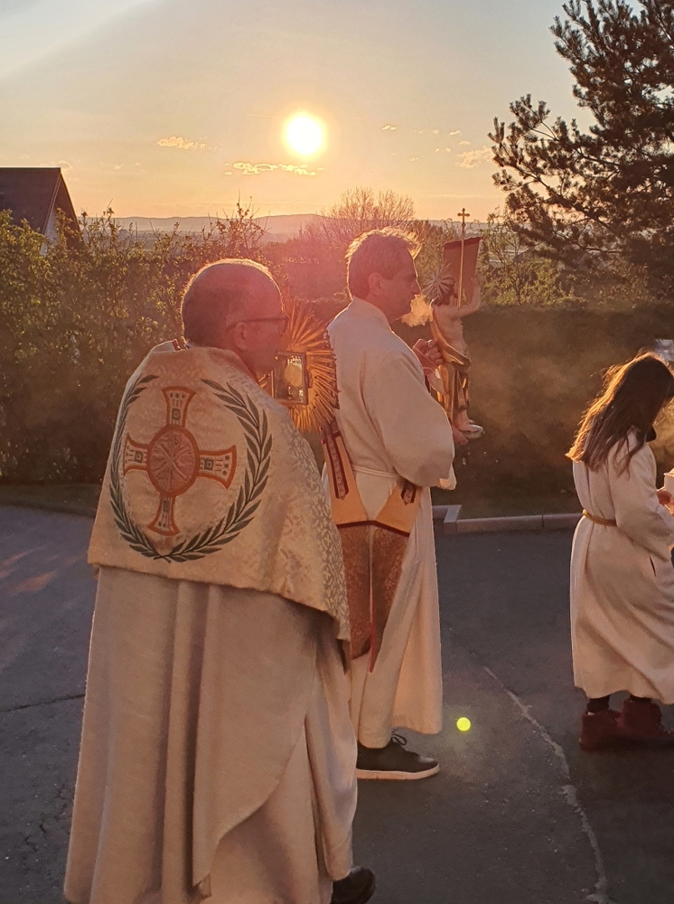 Am frühen Morgen des Ostersonntags feierten wir mit Vikar Norbert Glaser und Diakon Michi Zepf die Auferstehung unseres Herrn, Jesus Christus.